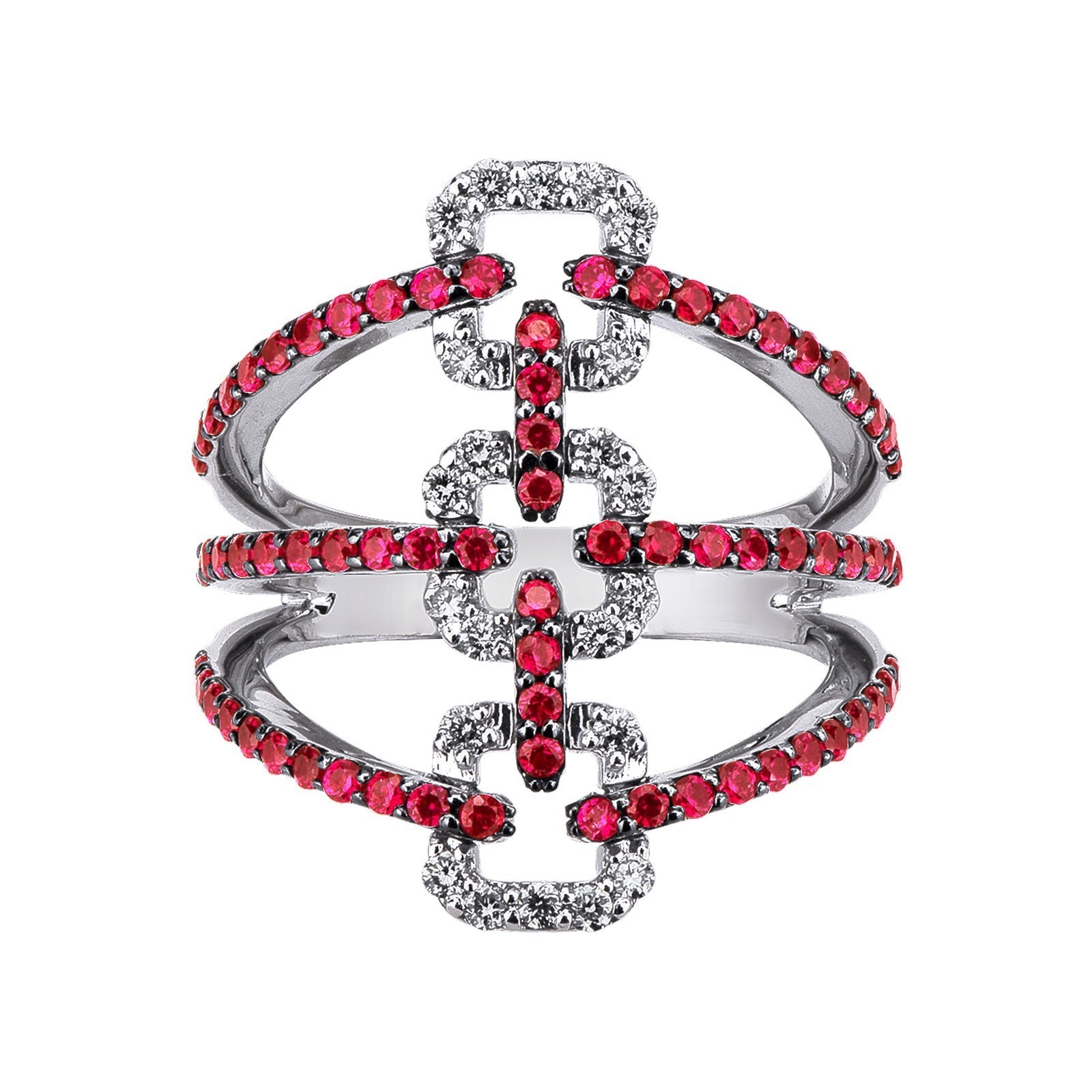 Bague bandeau diamant et rubis en or 750