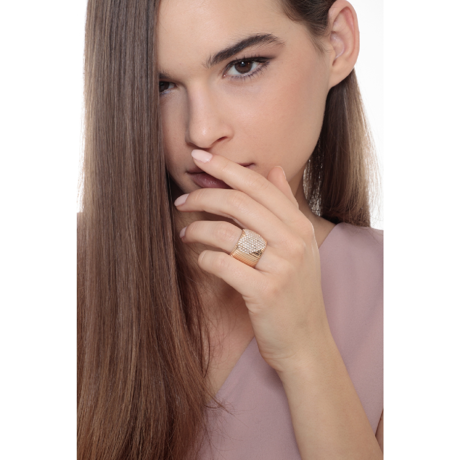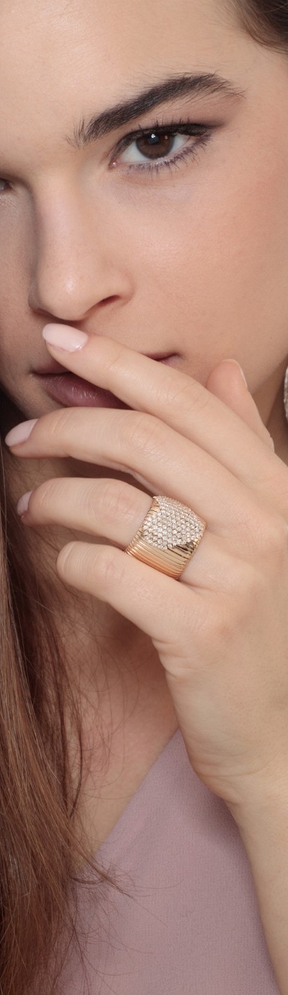 Bague bandeau flexible en or rose 18k cœur en pavé de diamants