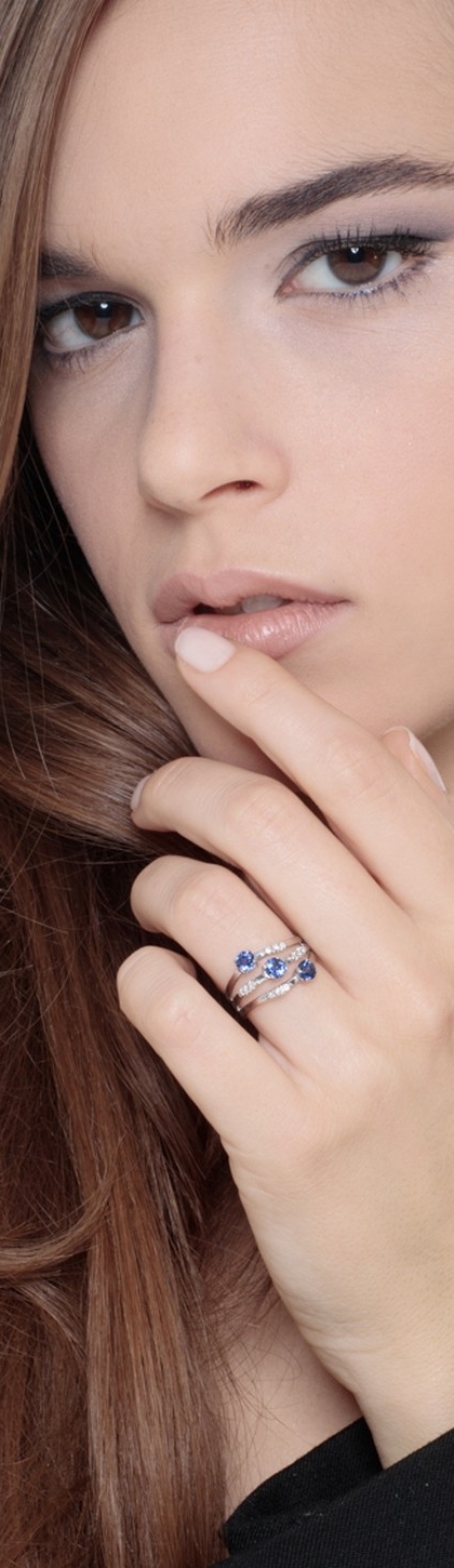 Bague en or blanc 750 avec saphirs bleus et diamants