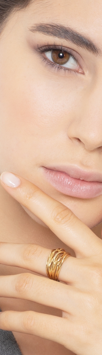 Bague en or jaune 18k avec fils ondes entrelaces
