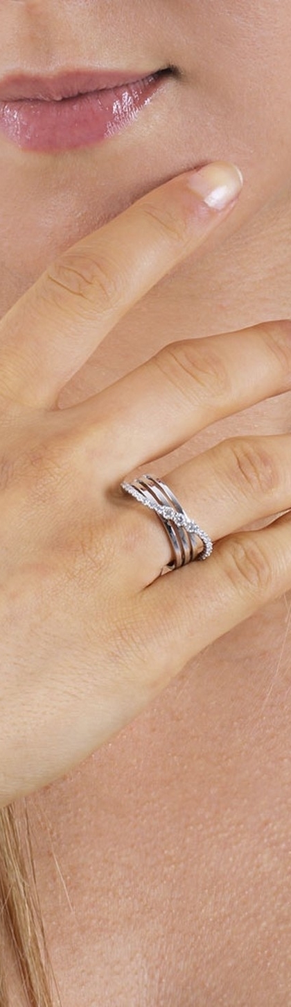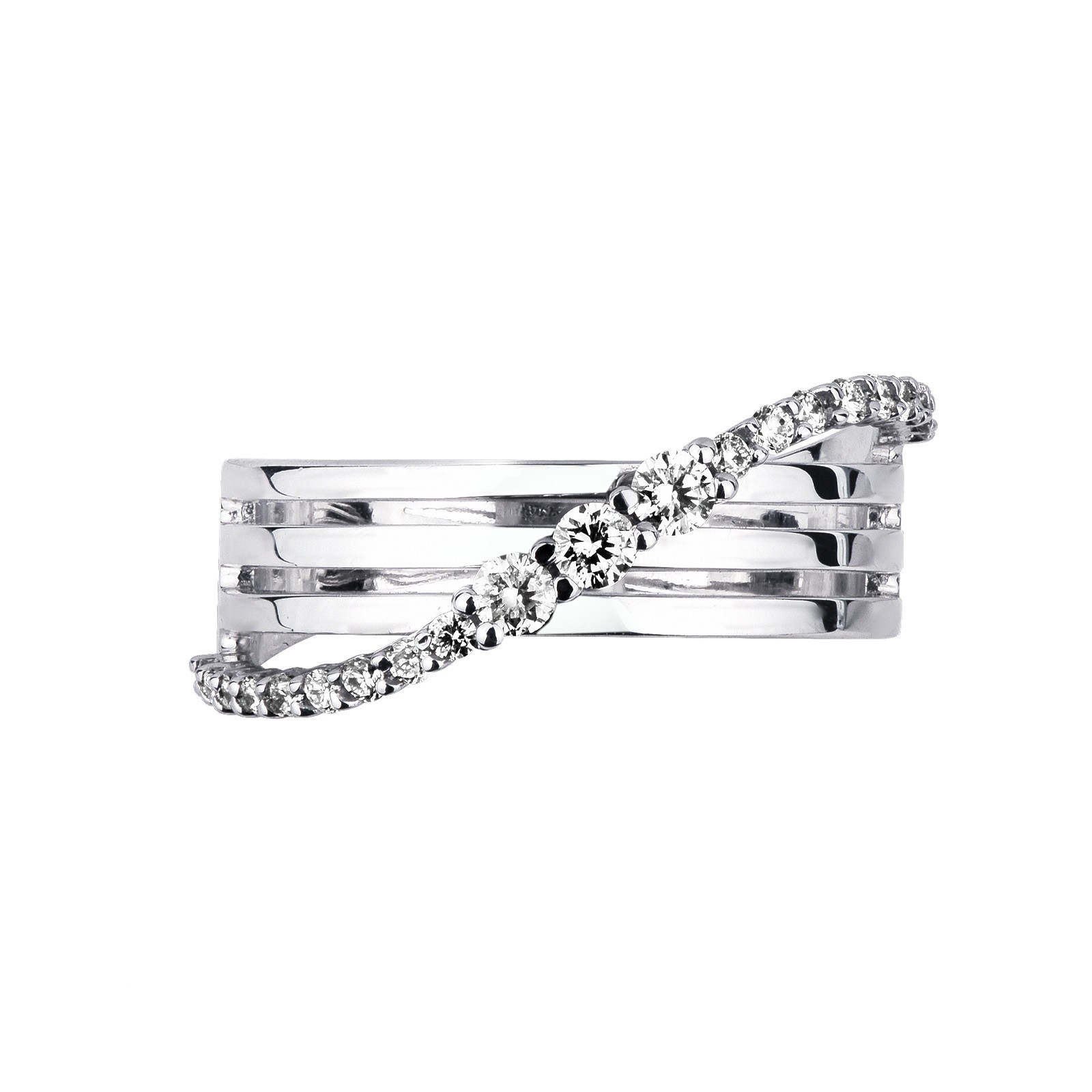 Bague entrelacée en or blanc 18k avec ondulation et diamants