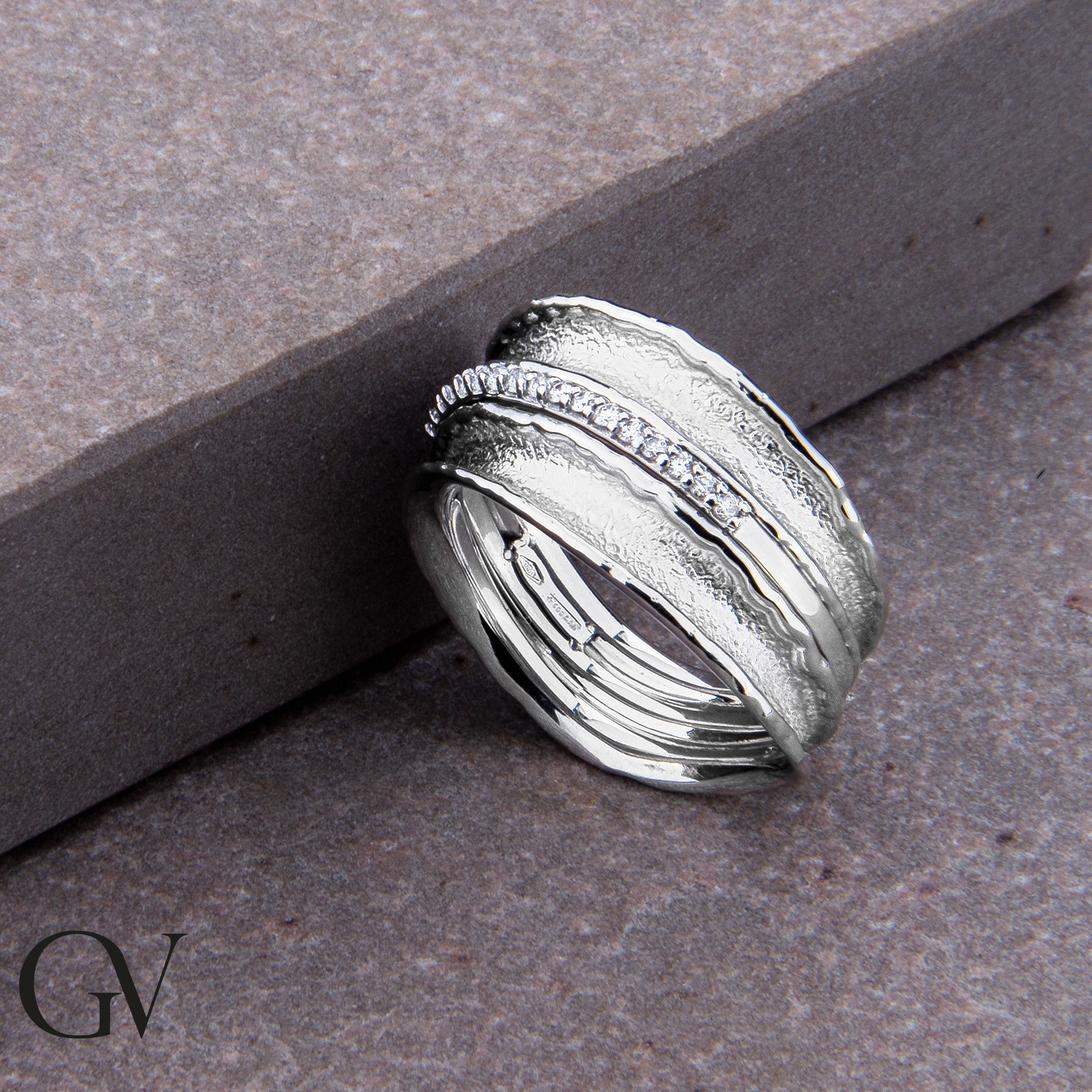 Bague fantaisie en or blanc 18k avec diamants