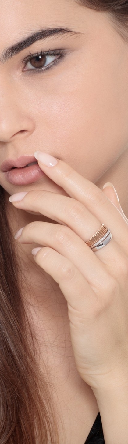 Bague jonc en or blanc et rose avec diamants