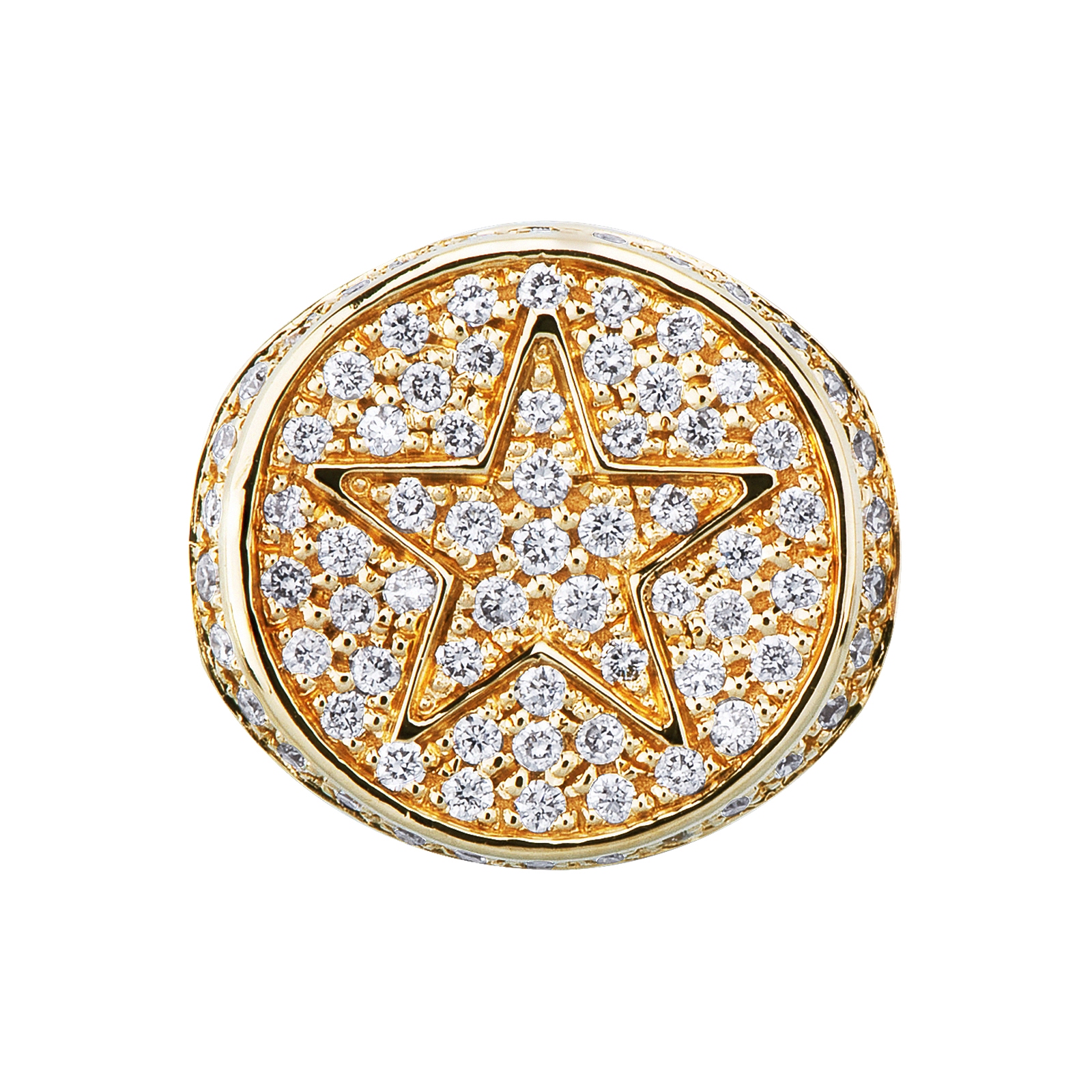 Bague chevalière en or jaune 18k avec étoile en relief pavée de diamants