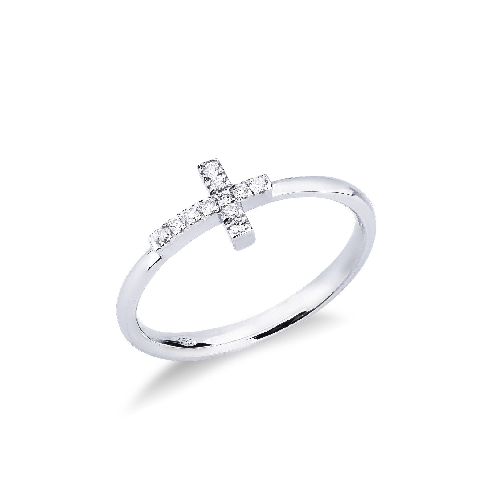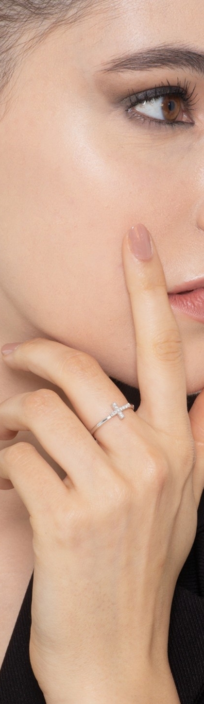 Bague avec croix en or blanc 18k et diamants