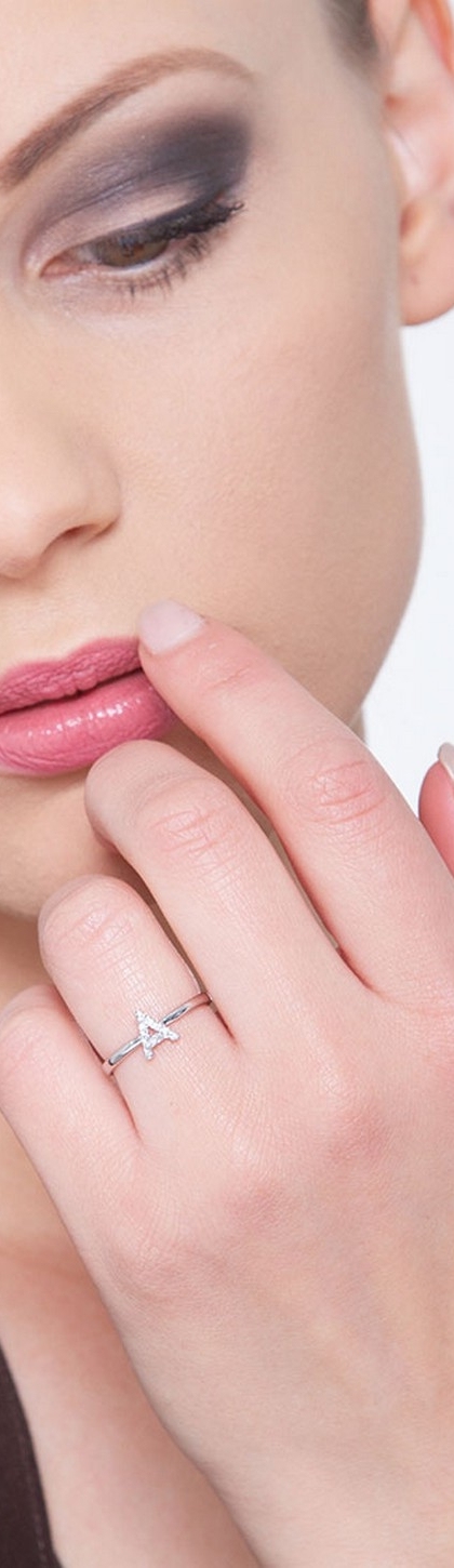 Bague avec lettre A en or blanc et diamants