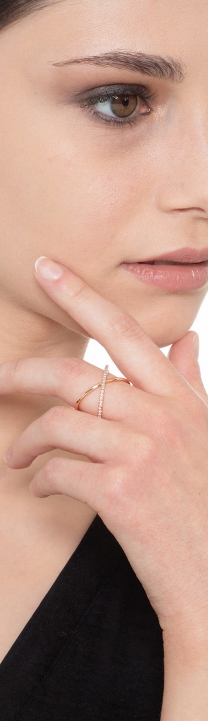 Bague design croisé en Or Rose 18k avec diamants brillants