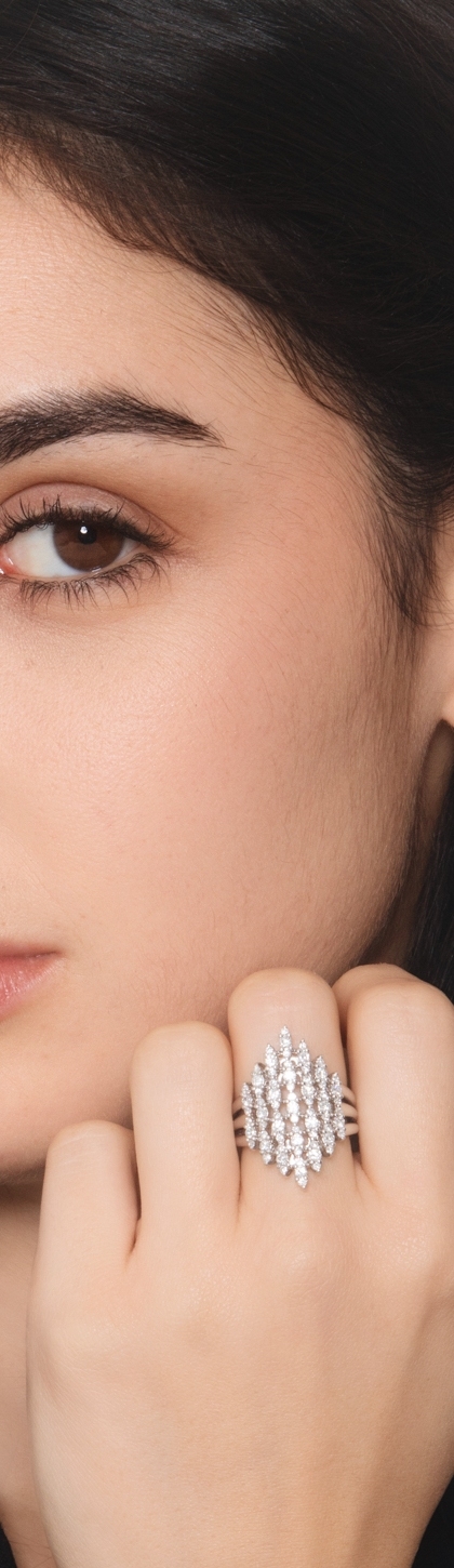 Bague design femme or blanc diamant