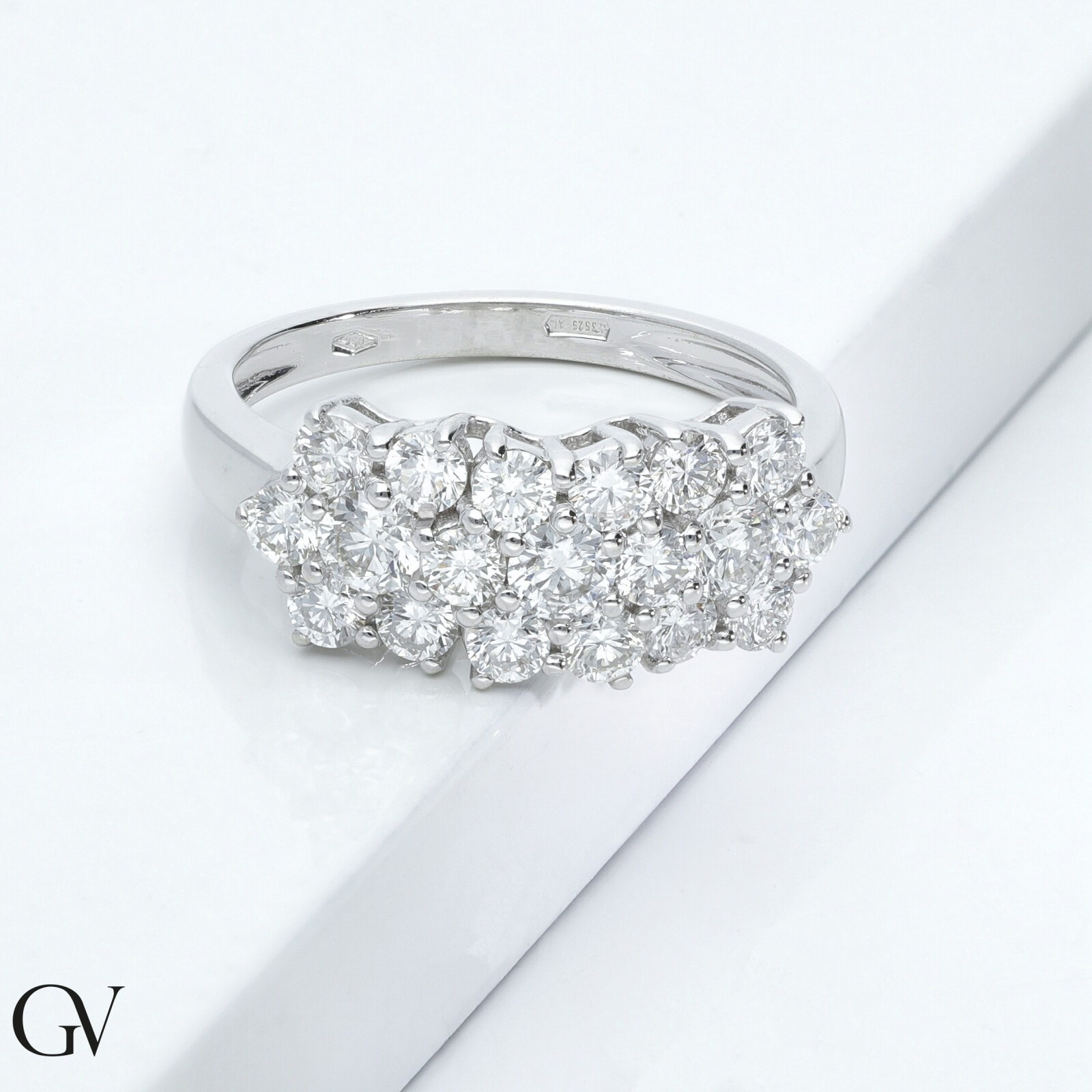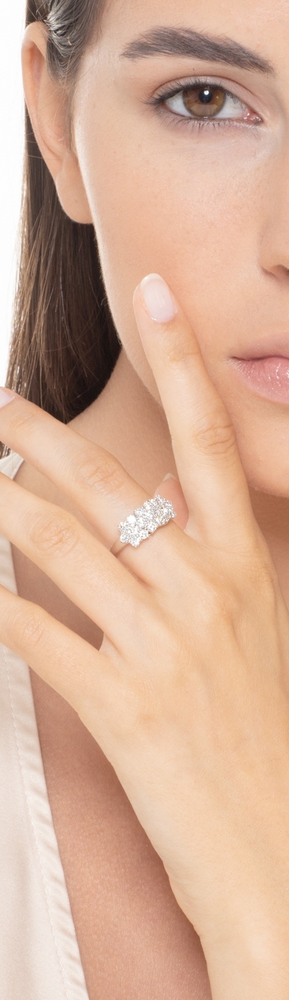 Bague en or blanc 18 carats avec 3 fleurs unies en diamants