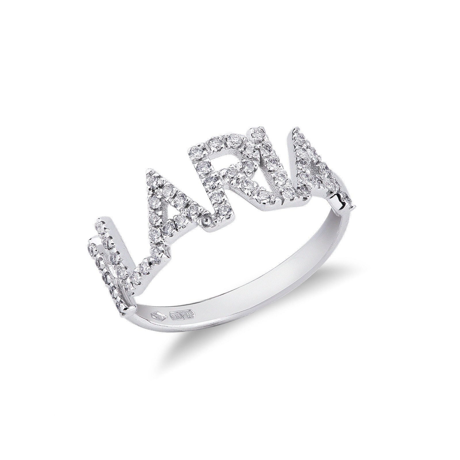 Bague en or blanc 18k avec le prénom ILARIA serti de diamants