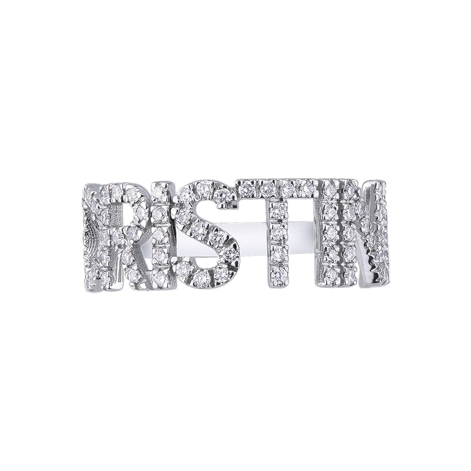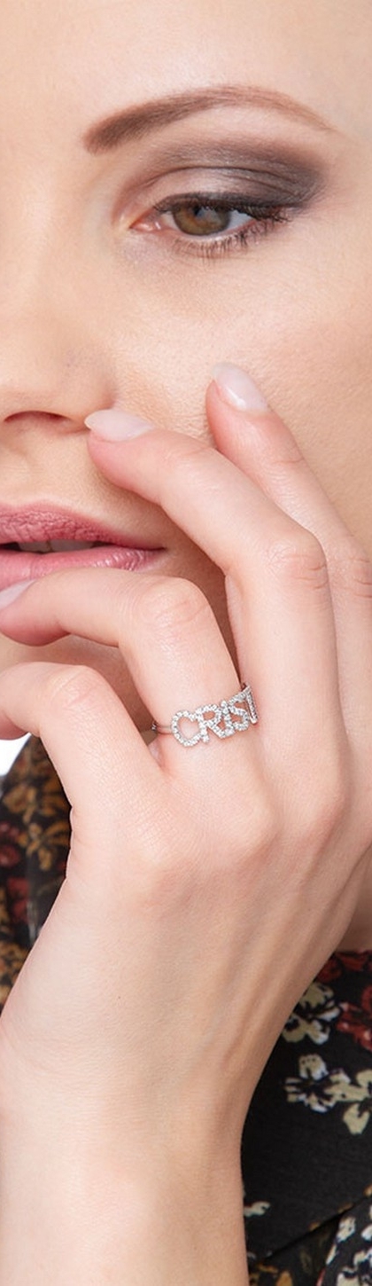 Bague en or blanc 18k avec prénom CRISTINA en diamants