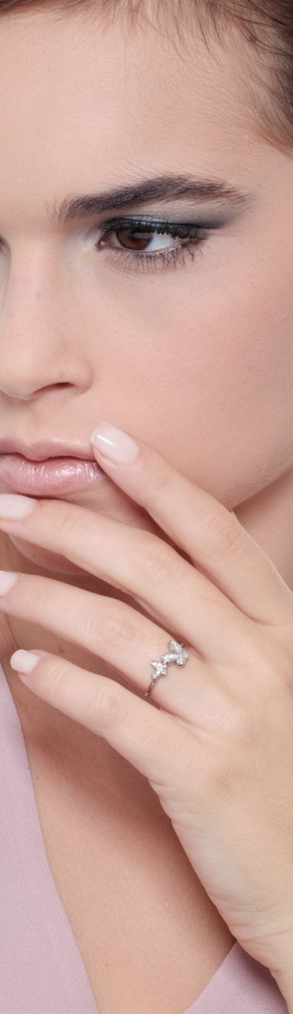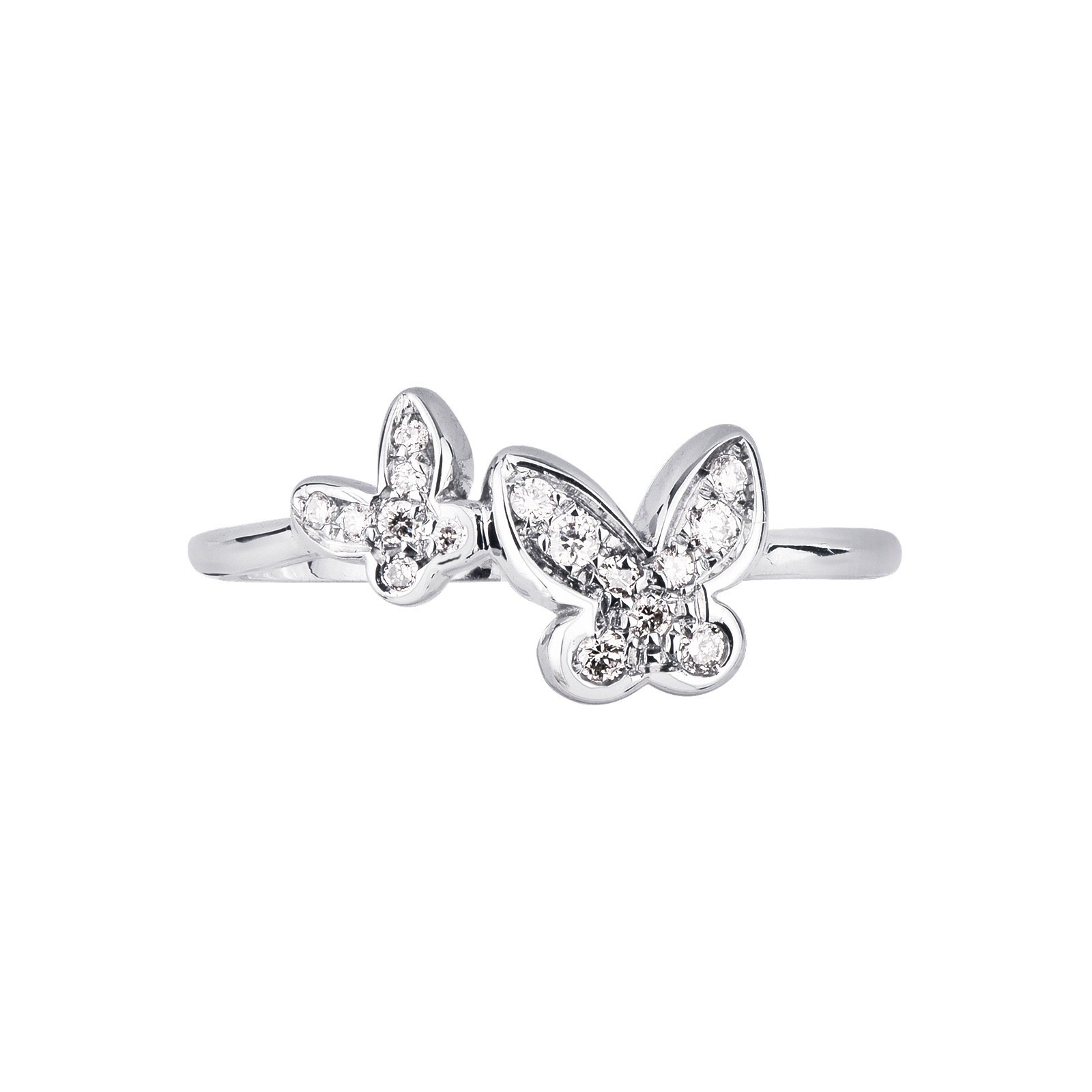 Bague en or blanc 18k avec un grand et un petit papillon