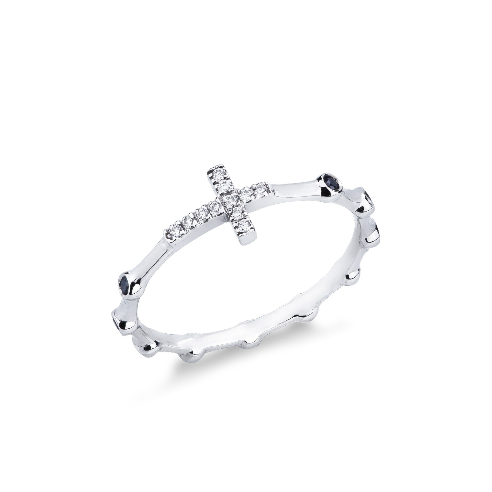 Bague en or blanc 18k croix blancs et noirs