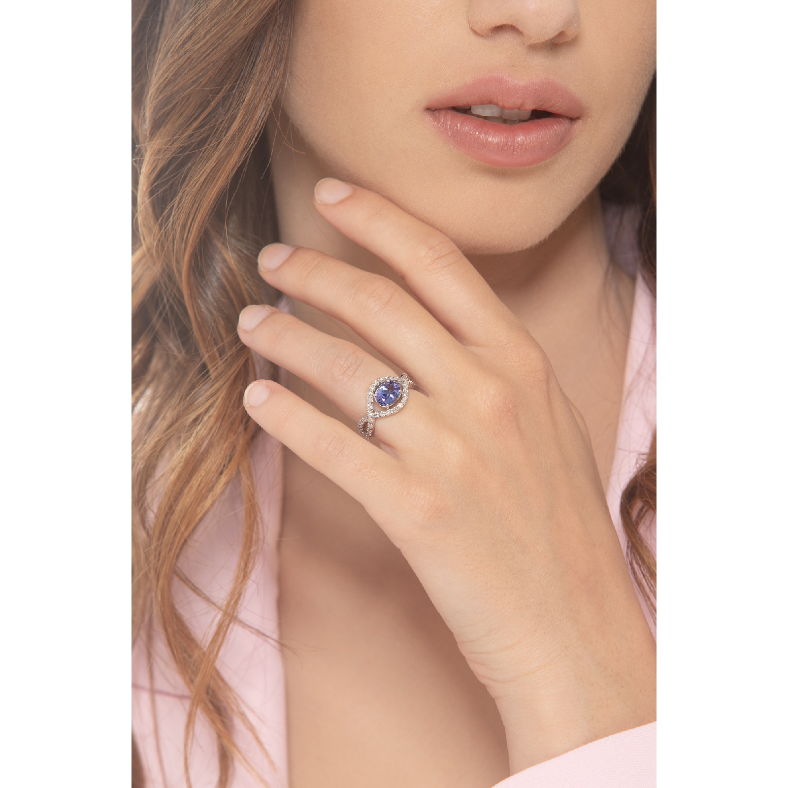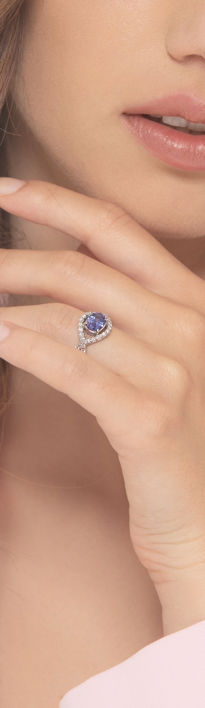 Bague or blanc 18k avec tanzanite et diamants entrelacés