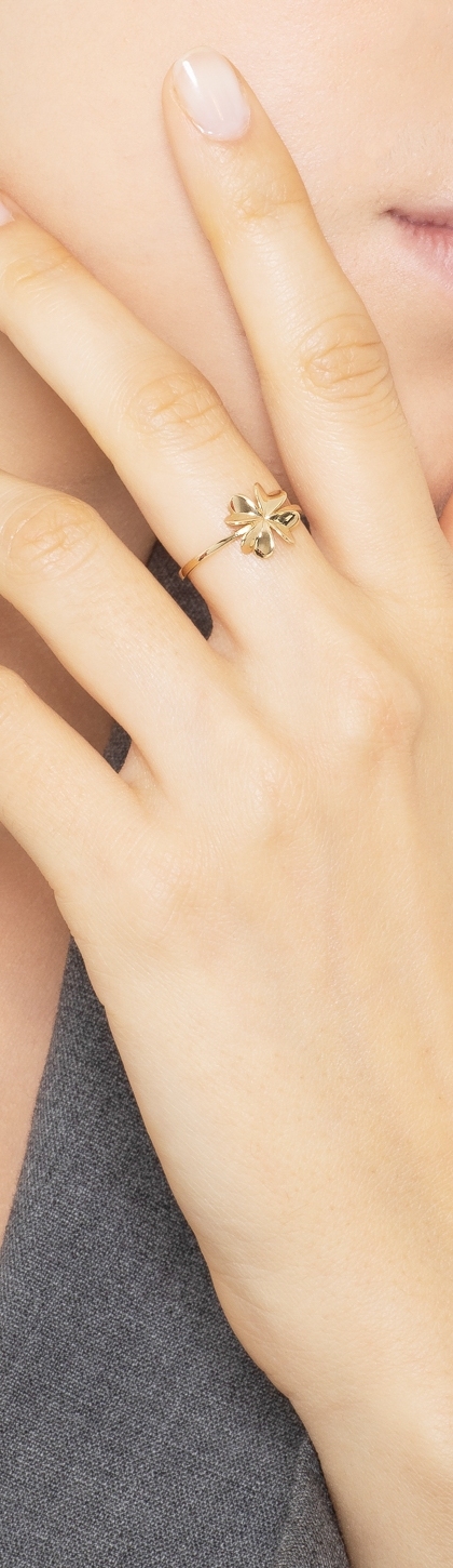 Bague or jaune 18k avec un trèfle à quatre feuilles