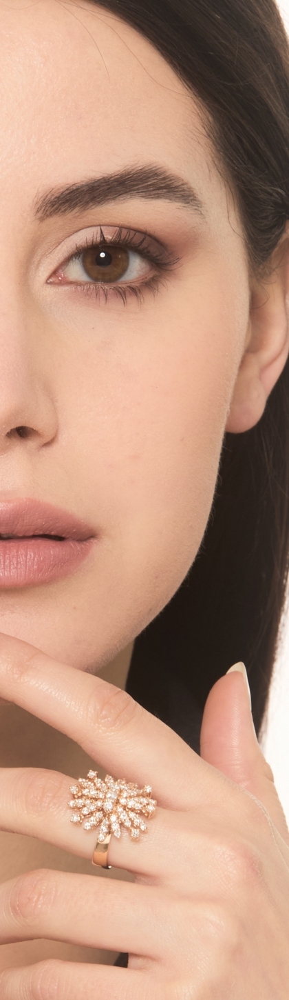 Bague or rose 18k diamants fleurs