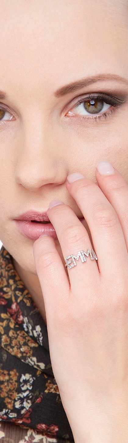 Bague personnalisée prénom EMMA en or blanc et diamants