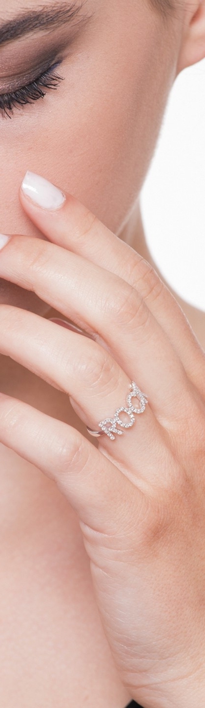 Domino est une collection de bijoux personnalisés en or et en diamant : bracelets, colliers, bagues et boucles d'oreilles qui peuvent être personnalisés avec votre prénom ou vos initiales.