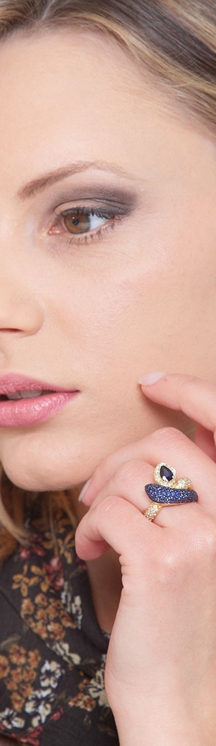 Bague serpent en or jeune 18K sertie de diamants et saphir