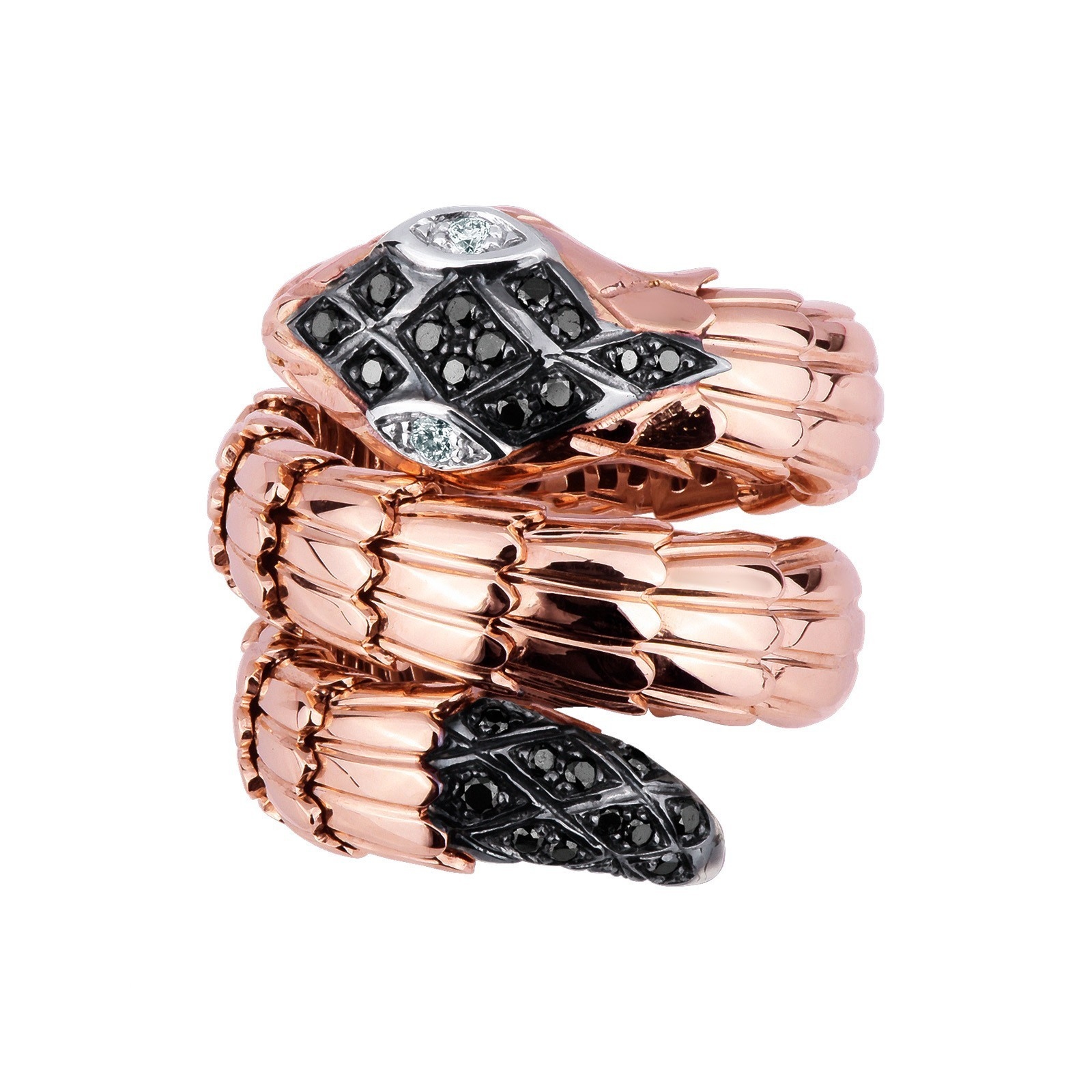 Bague serpent en or rose 18k avec diamants noirs et blancs