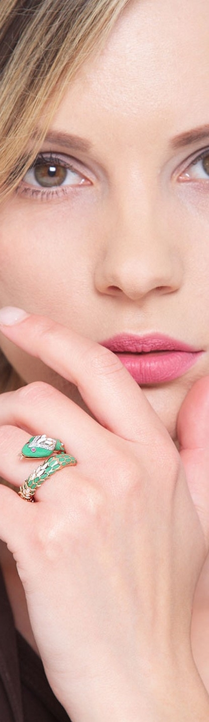Bague serpent en or rose 18k ornée de diamants Et rubis