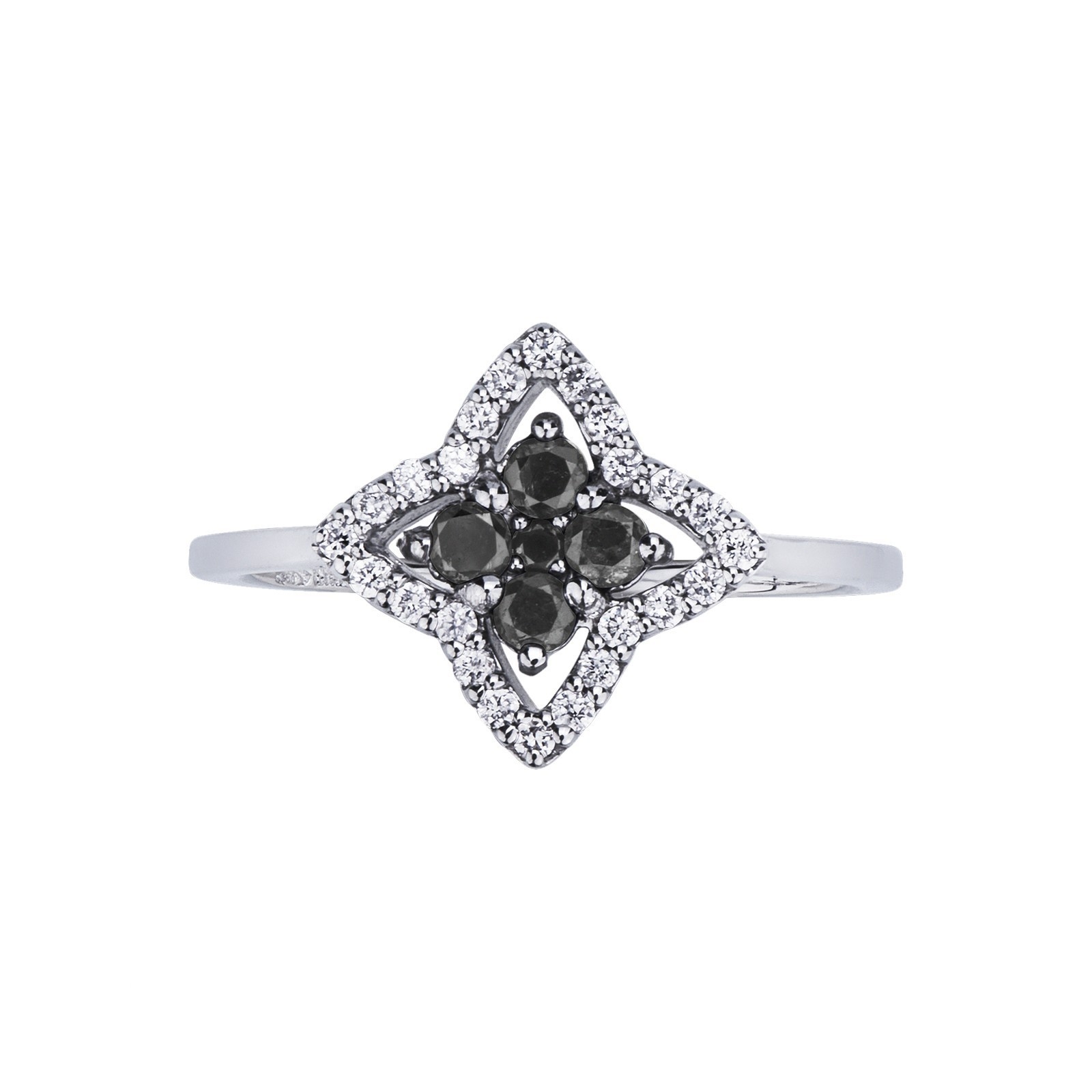 Bague étoile en or blanc 18k avec diamants noirs et blancs