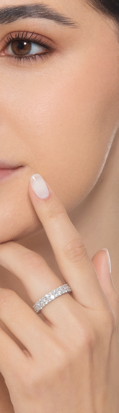 Bague eternity en or blanc 18k avec deux rangées de diamants