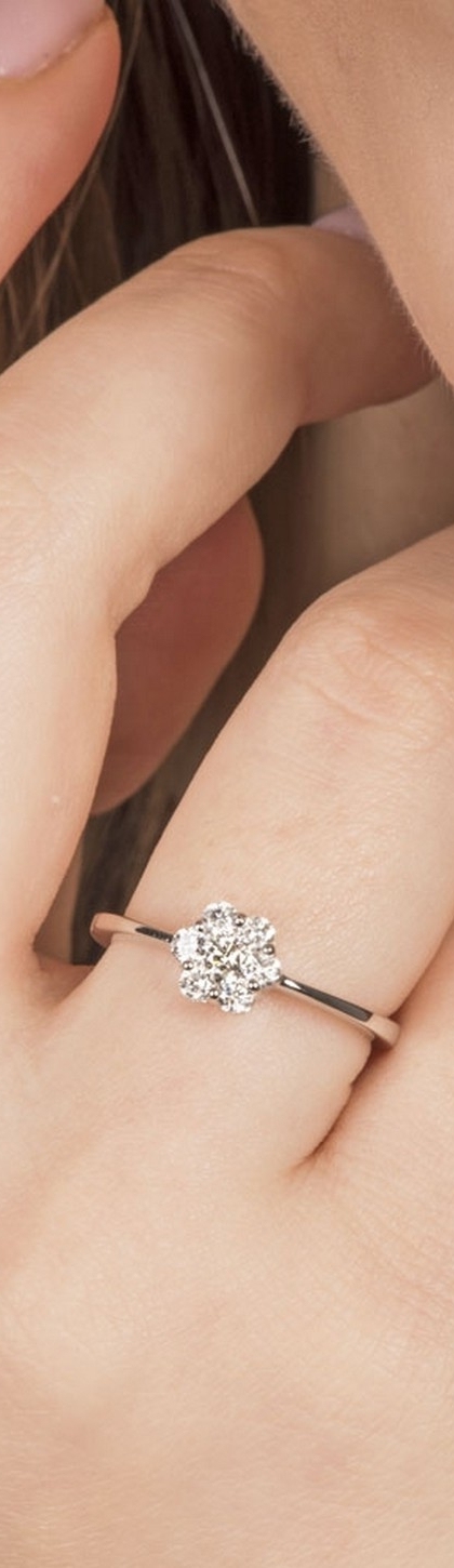 Bague fleur or blanc 18k avec diamants
