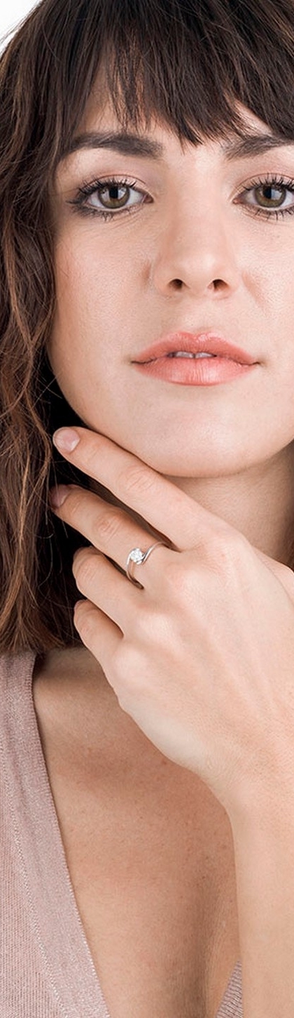 Bague solitaire illusion en or blanc au design et diamant
