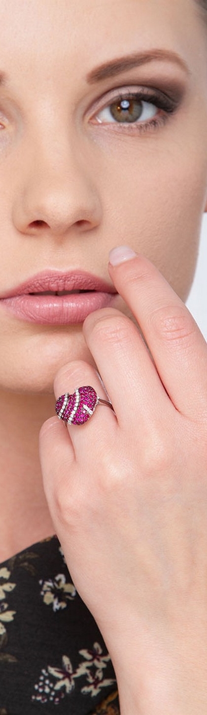 Bague avec cœur pavé de rubis et de diamants en or 18k