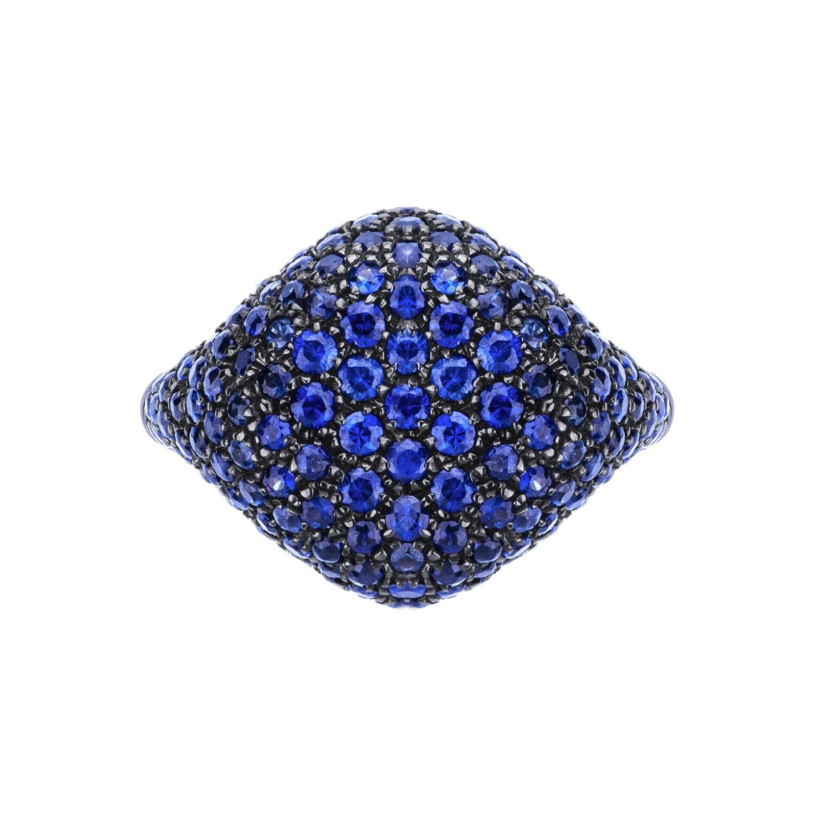 Bague chevalière en or rose 18k avec pavé de saphirs bleus