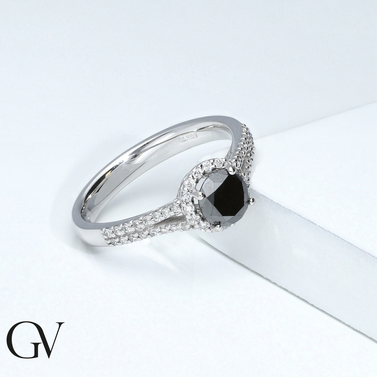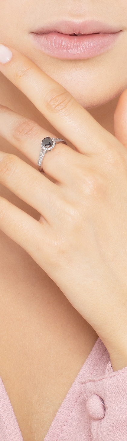 Bague en or blanc 18K avec diamant noir et diamants blancs