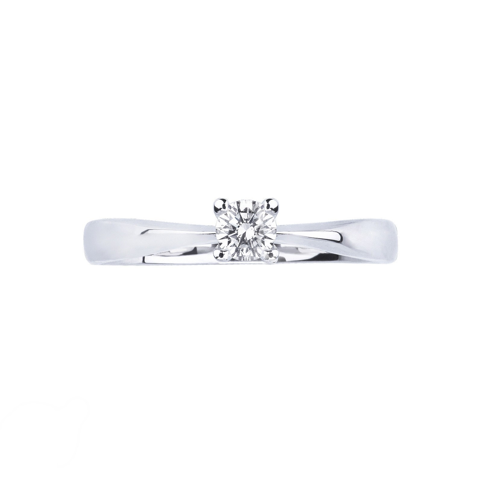 Bague Solitaire 4 Griffes en Or Blanc 18k avec Diamant 0,20 ct