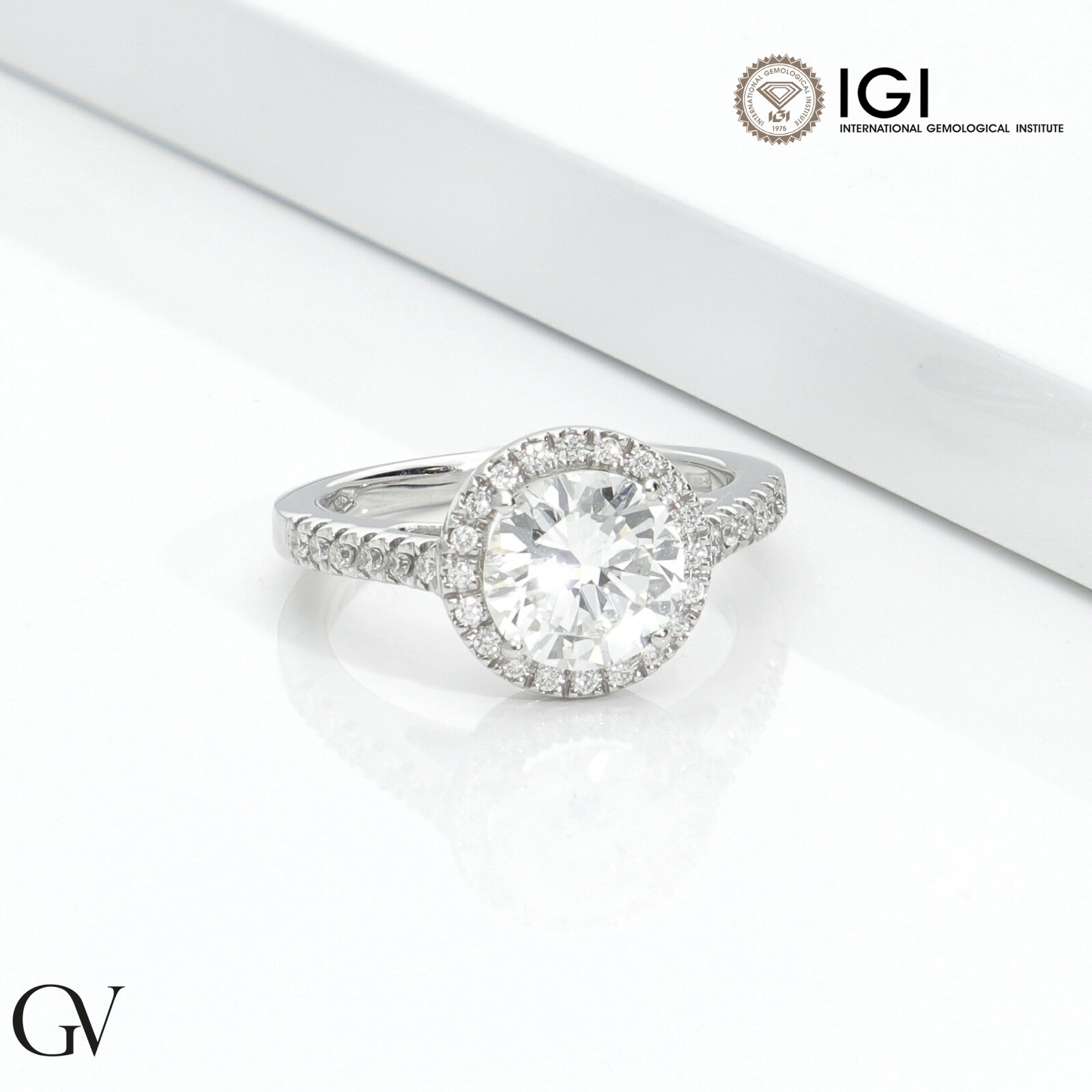 Bague solitaire avec diamant central GIA 2.00 ct en or blanc 18K