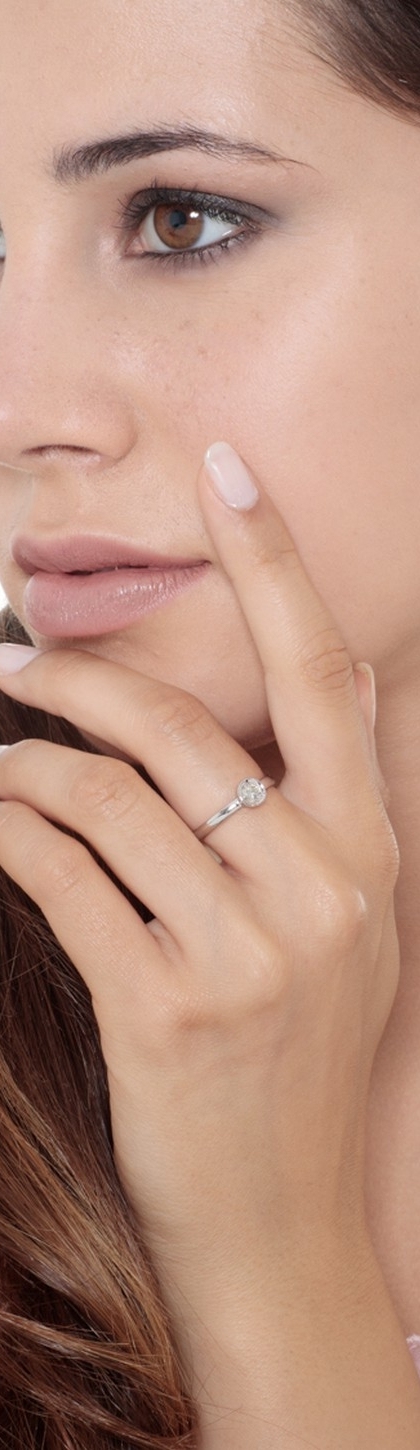Bague solitaire pour dame avec diamant central, taille brillant, couleur H pureté VS, en or blanc.