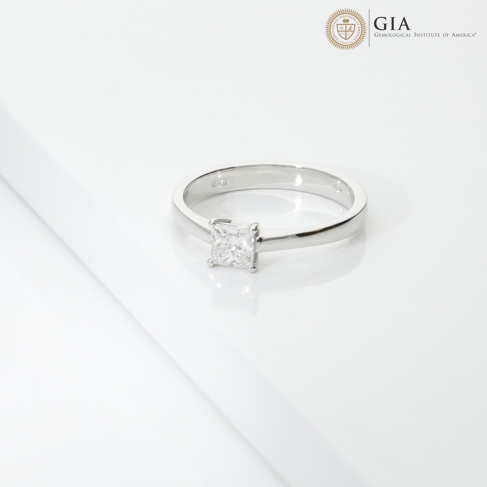 Bague solitaire diamant taille princesse GIA 0.50 ct or blanc 18k