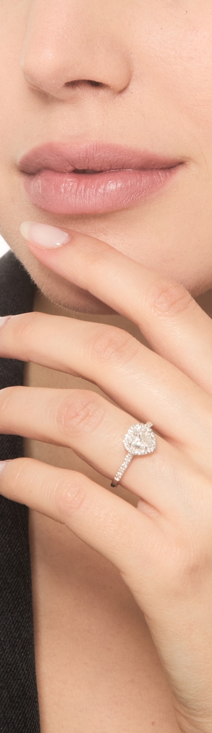 Bague solitaire en or 750 avec un diamant central à cœur GIA CT.1.00