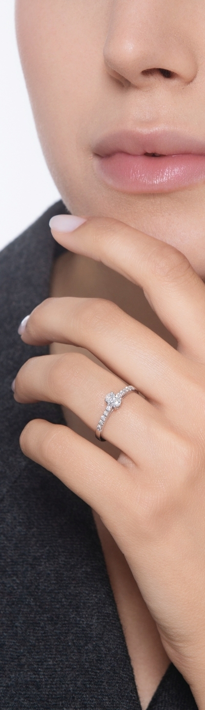 Bague solitaire en or blanc 18 carats avec diamant ovale certifié GIA 0.30 ct