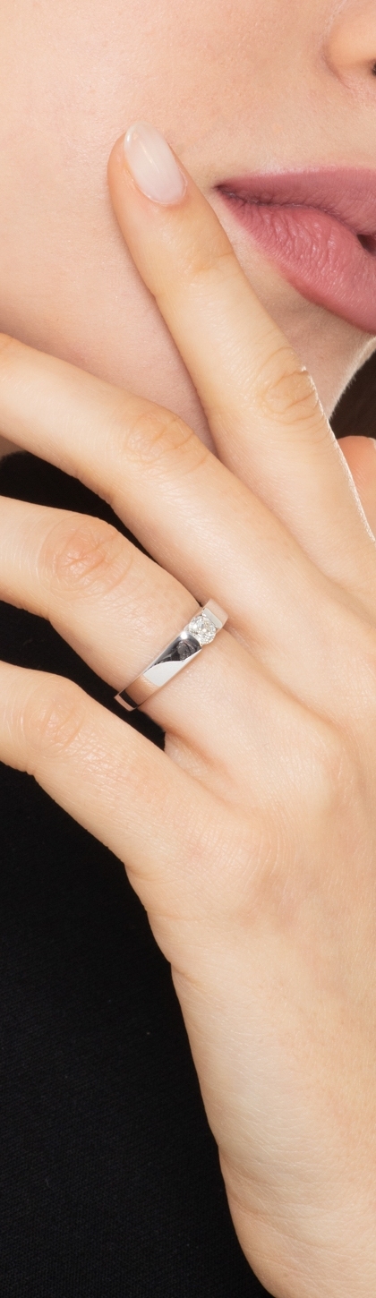 Bague solitaire en or blanc 18k moderne avec diamant 0,30ct