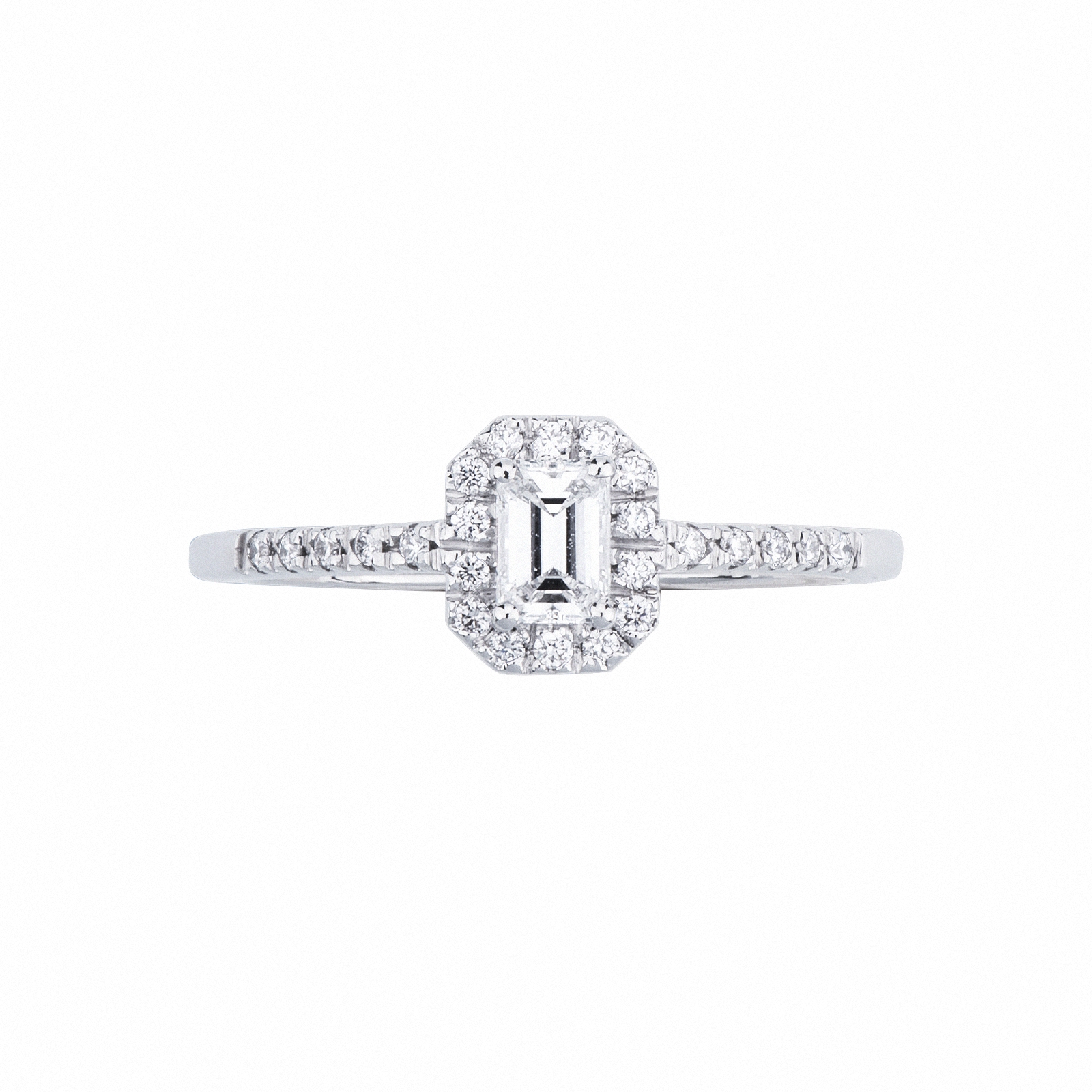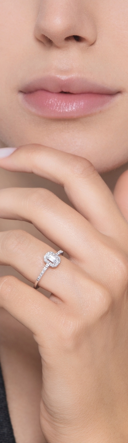 Bague solitaire en or blanc 18k taille émeraude GIA 0,30 ct