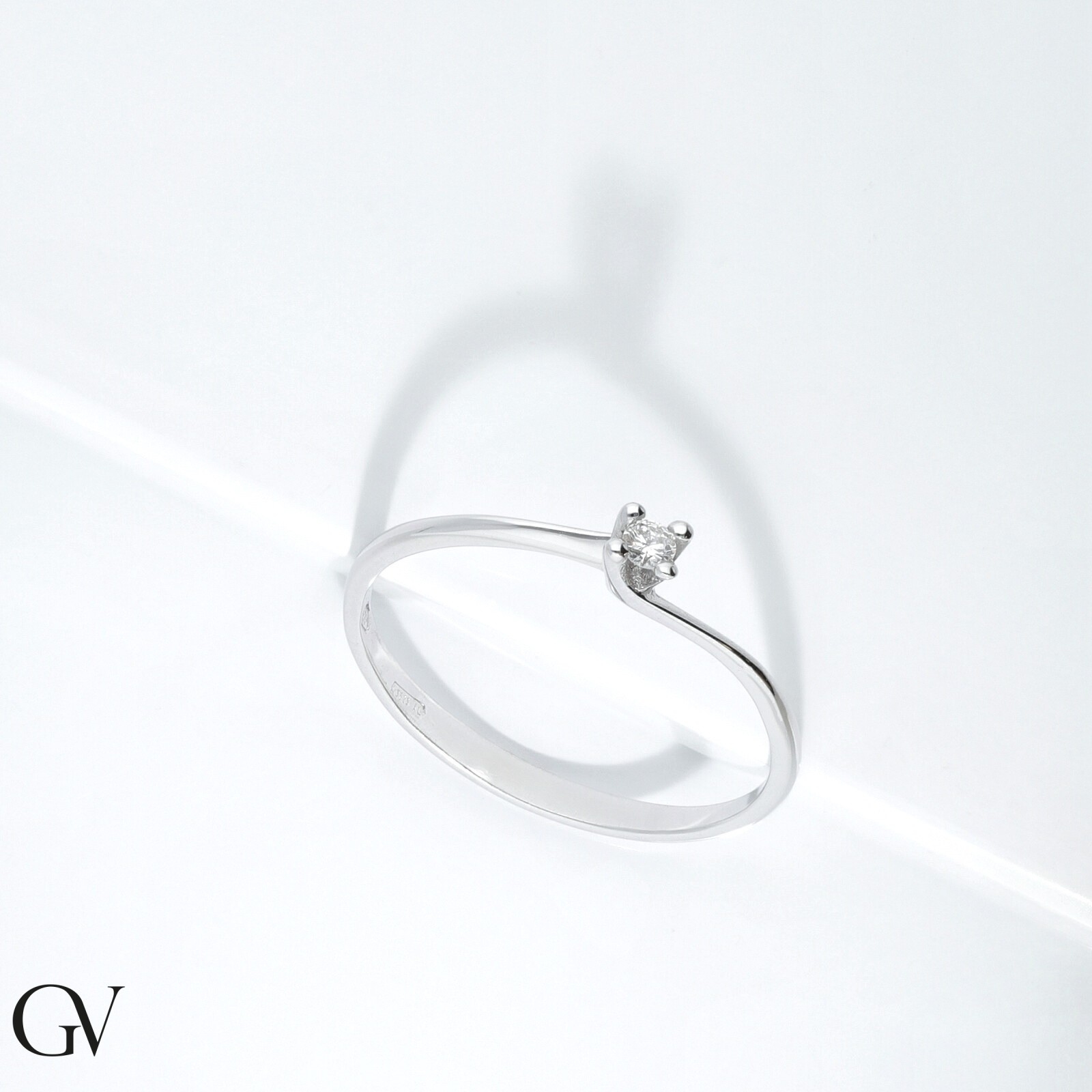 Bague solitaire en or blanc 750 avec diamant 0,04 ct