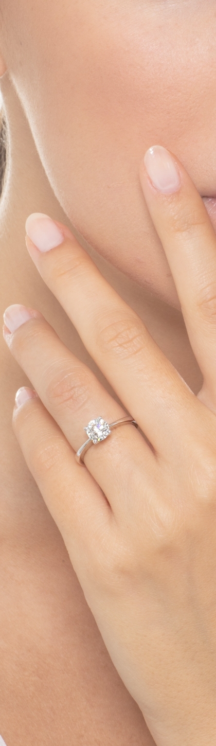 Bague solitaire linéaire à griffes en or blanc avec diamant ct. 0,90