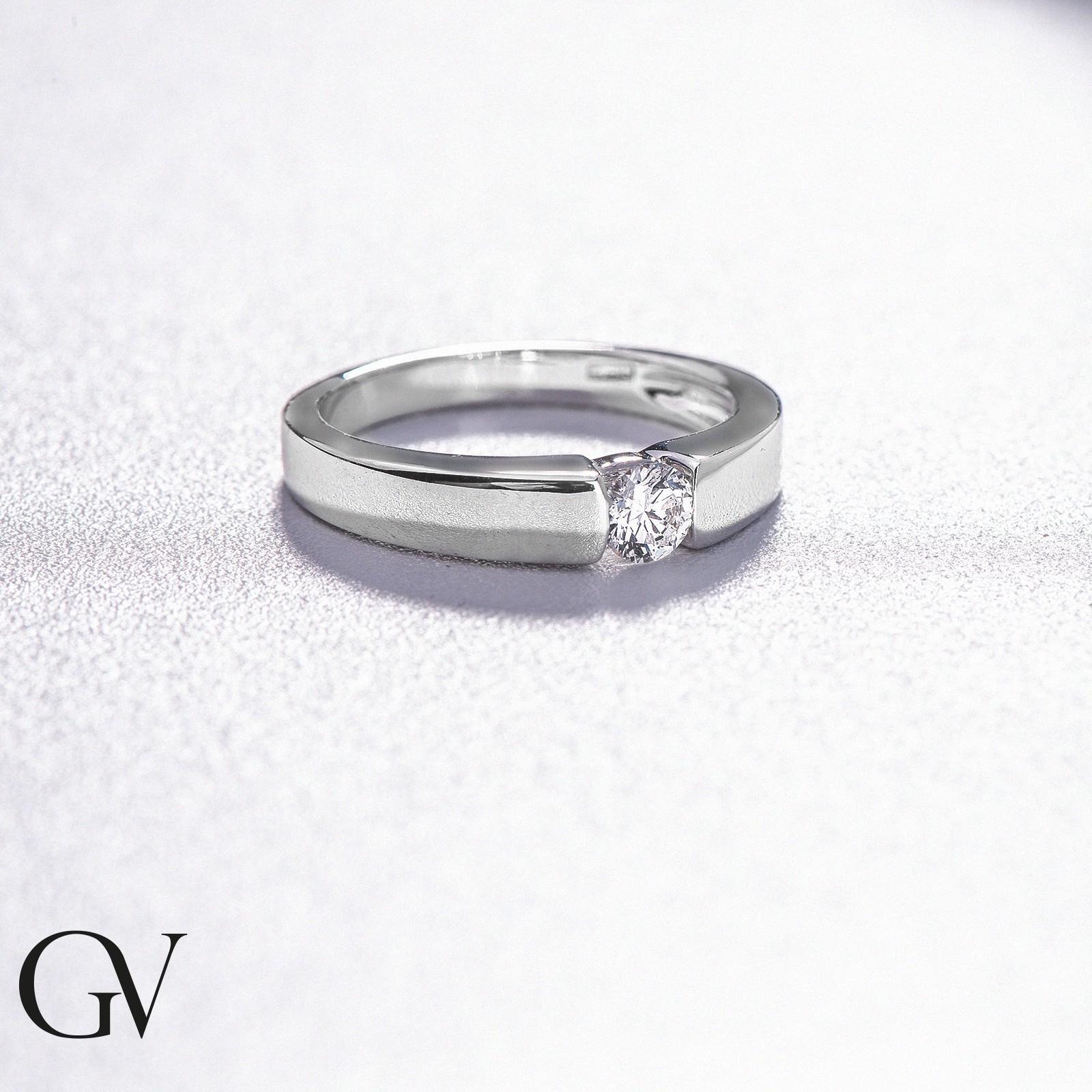 Bague solitaire moderne en or blanc 18k avec diamant 0,25ct