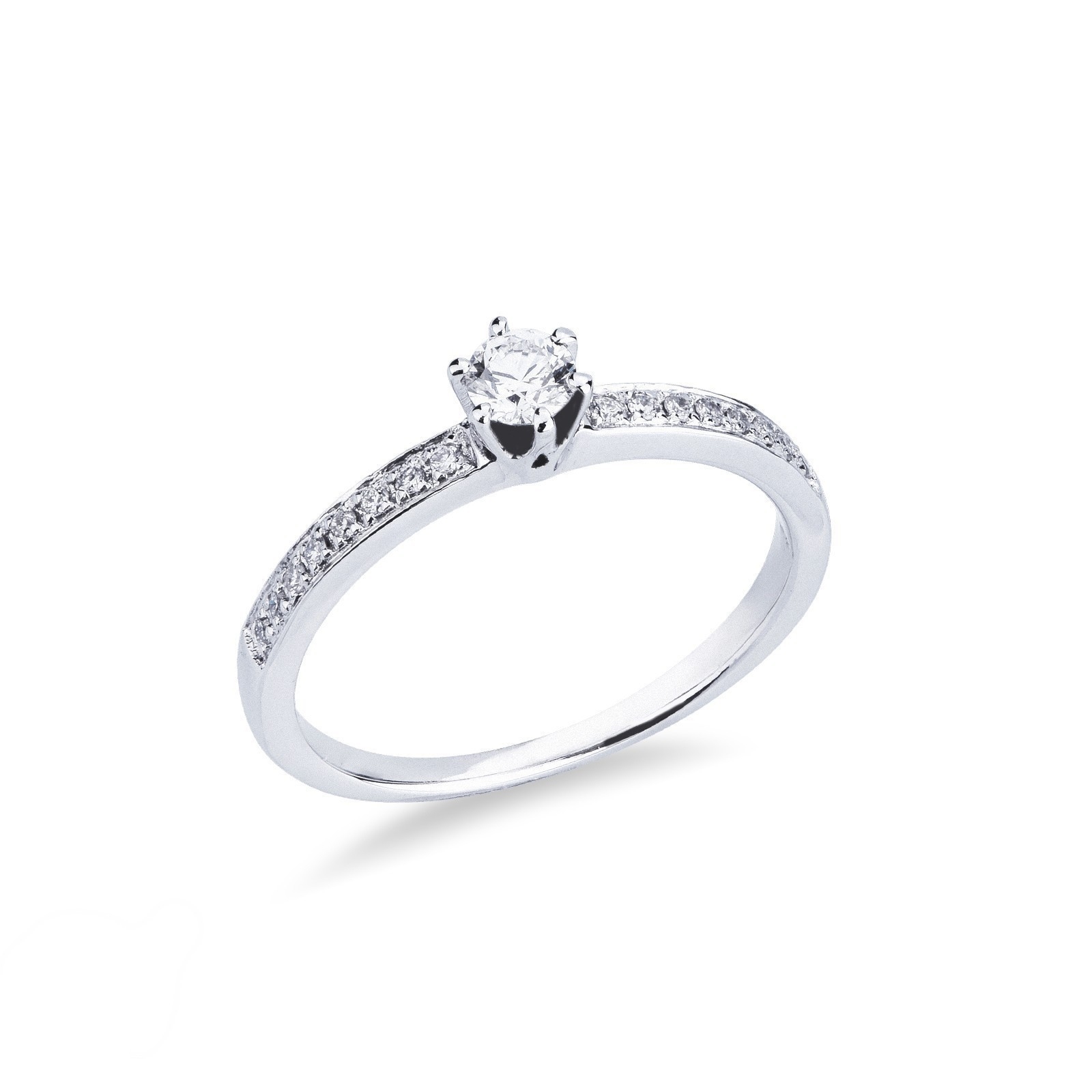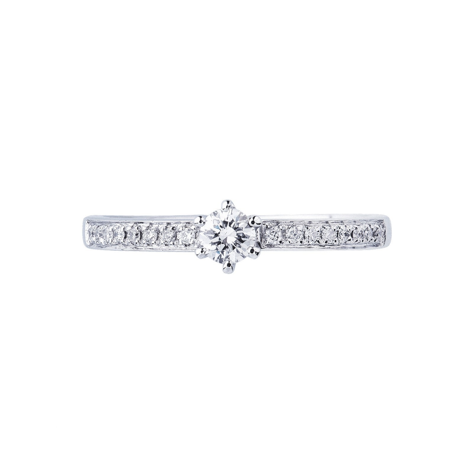 Solitaire à six griffes en or blanc 18 carats avec diamant central de 0,20 ct