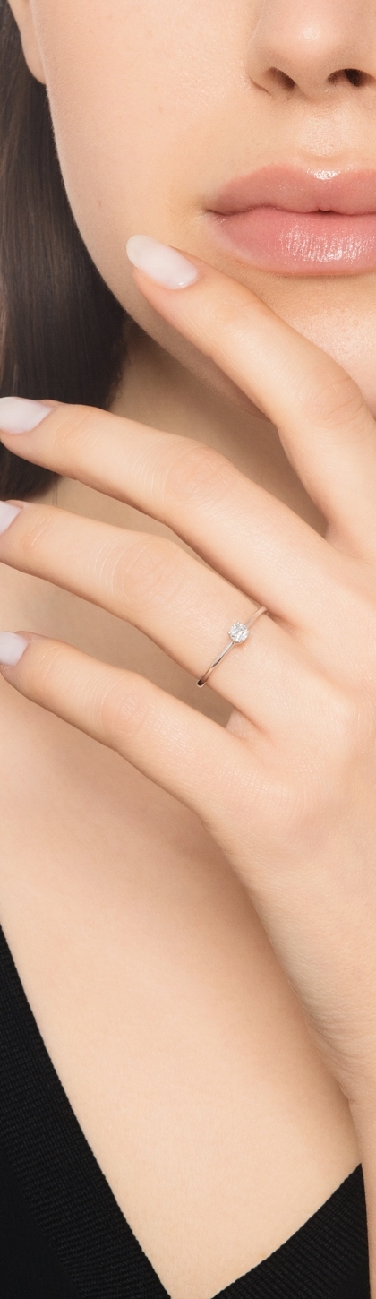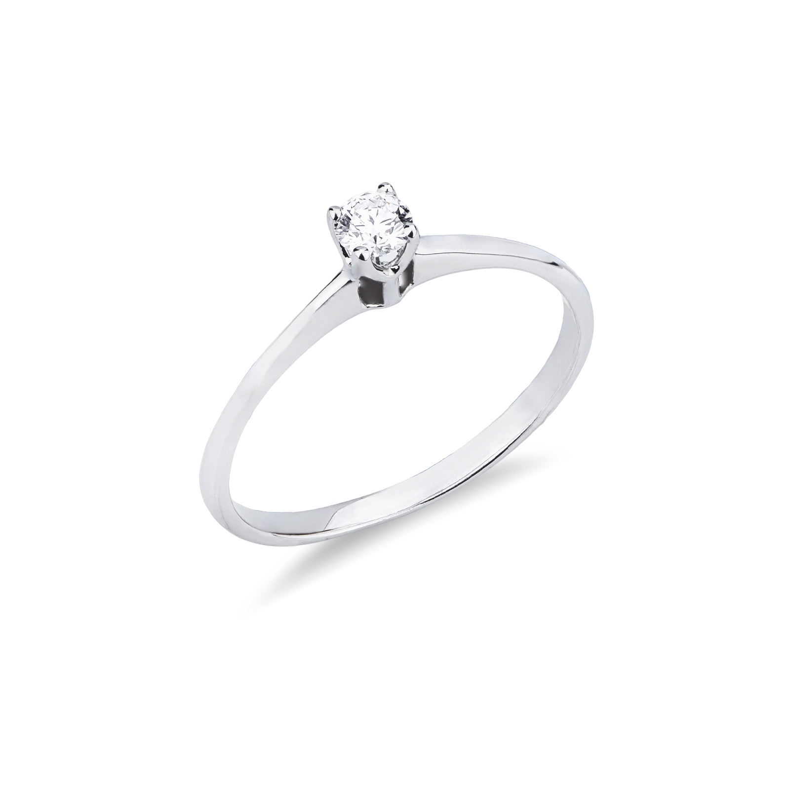 Solitaire Or Blanc 18K 4 Griffes et Diamant 0.15 ct