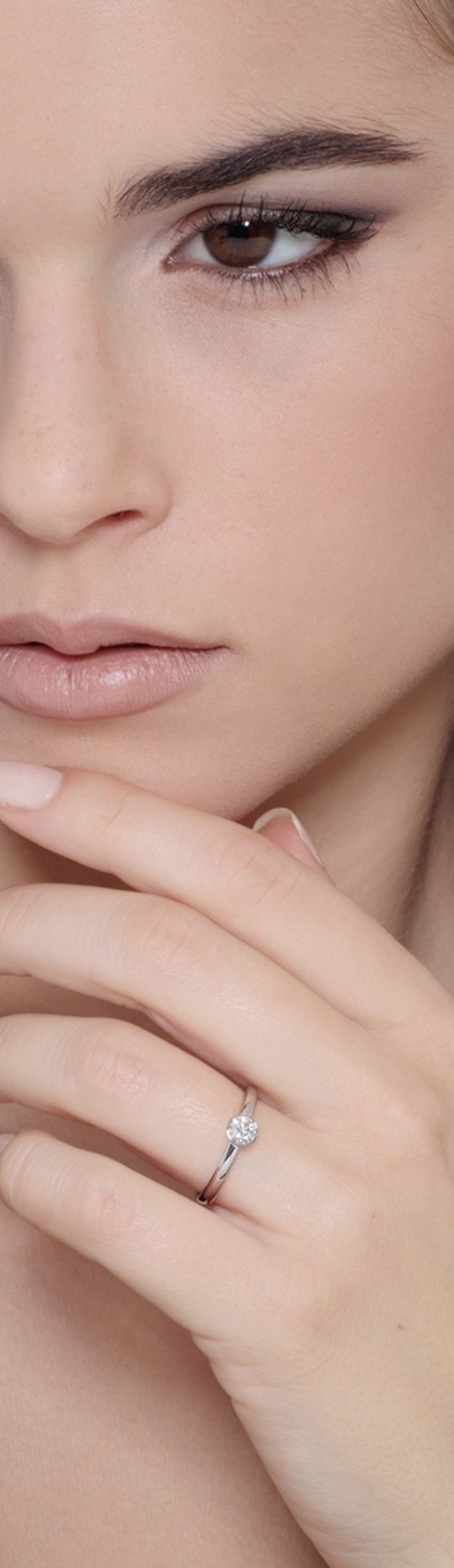 Solitaire Or blanc 18k Lunette avec Diamant ct 0.30- modèle Panarea