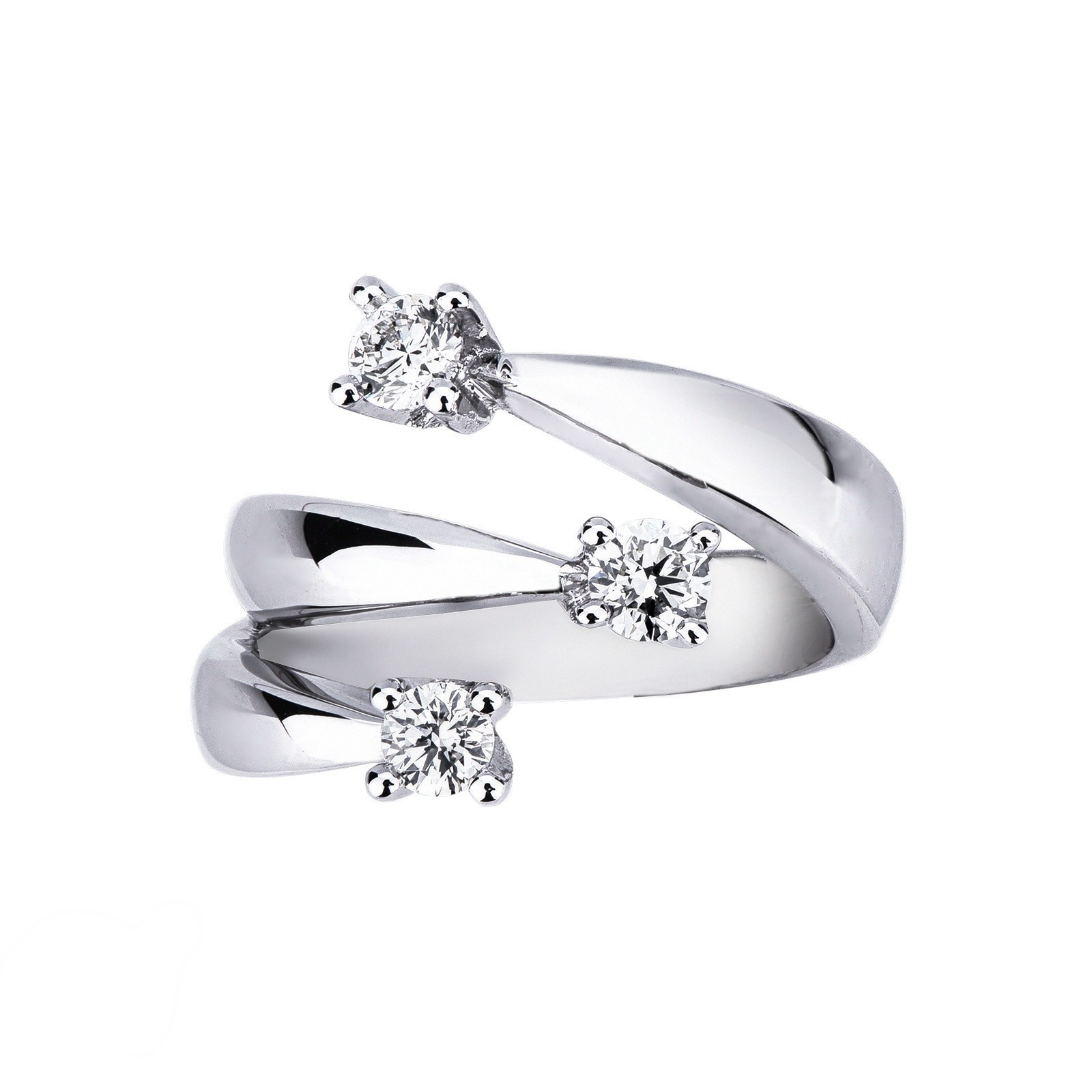 Bague à 3 branches ouvertes en or blanc 18k avec 3 diamants 0.60 ct