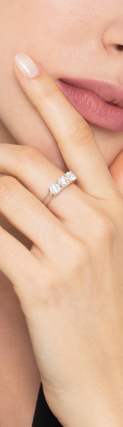 Bague 3 pierres en or blanc 18k avec diamants 1,50 ct