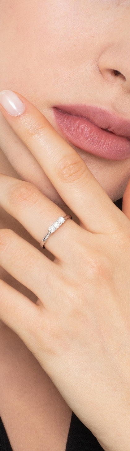 Trilogy pour femme en or blanc 18k, diamants de taille brillant de couleur H et de pureté VS.
