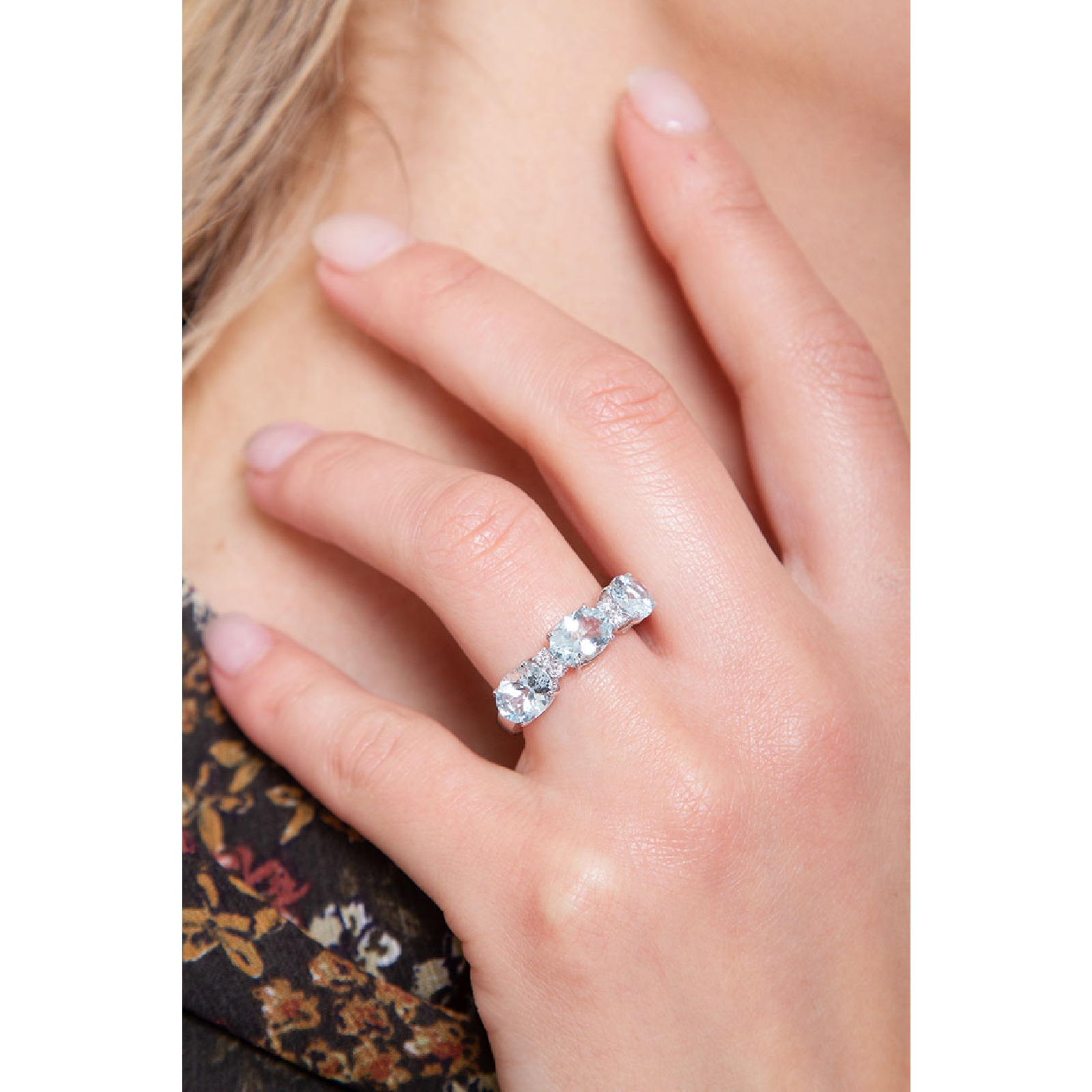 Bague en or blanc 18 carats avec des diamants et des aigue-marines